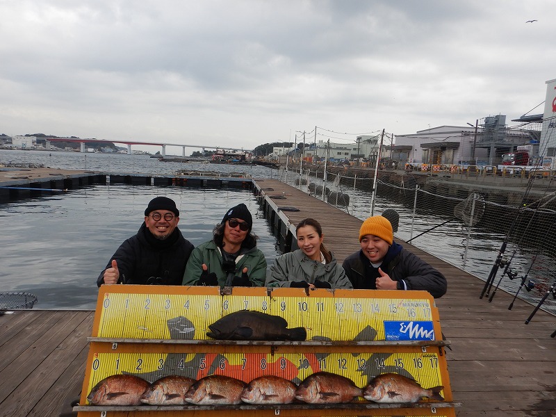 本日は一日を通して北風が吹いており、 寒かったです。 朝の水温は13.2℃、透明度は4メートル程です。 それでは本日の釣果を紹介します! CaVaDaBa サバダバチャンネルの皆様 マハタ×1 マダイ×6 アタリのない時間が何回かありましたが、 活性が上がったタイミングでマダイが釣れましたね! 餌は黄色の練り餌で釣れましたね! イワシ餌でもアタリはありましたが食いが浅く掛かりがイマイチでした。マ
