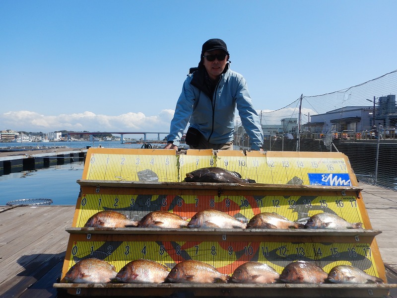 本日は晴れ間が広がり 暖かくなりましたね!! 朝の水温は13.8℃、透明度は4メートル程です。 それでは本日の釣果を紹介します! リピーターO様 マハタ×1 マダイ×11 フカセ釣りでコンスタントにマダイが釣れましたね! 食いが浅かったので黄色の練り餌を小さく付けて 釣れていましたね! マハタはマダイを狙て黄色の練り餌でやっていたら釣れましたね! おめでとうございます!! ★ウェブからのご予約の方